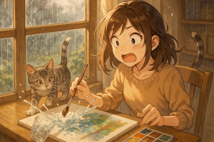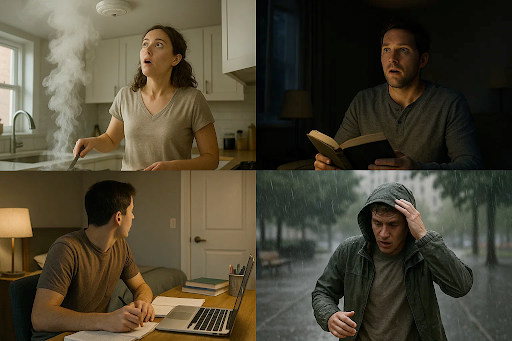 C. El estudiante tomaba apuntes en su escritorio… | 3. …cuando empezó a llover con fuerza. |